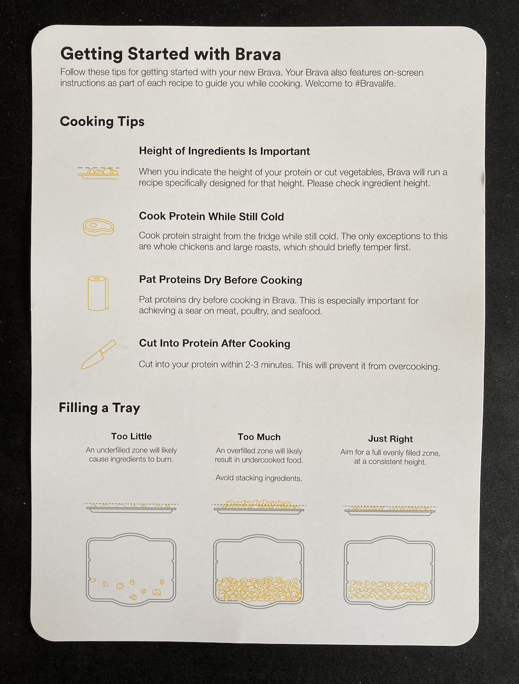In your box is a handy starter guide, which welcomes you to #bravalife. The touch-screen on the device has step-by-step instructions complete with full recipes to make your experience as fool-proof as possible. Couple this with a vibrant Facebook and Instagram community constantly highlighting new use cases and recipes, and you’ll never run out of inspired ways to use the Brava.